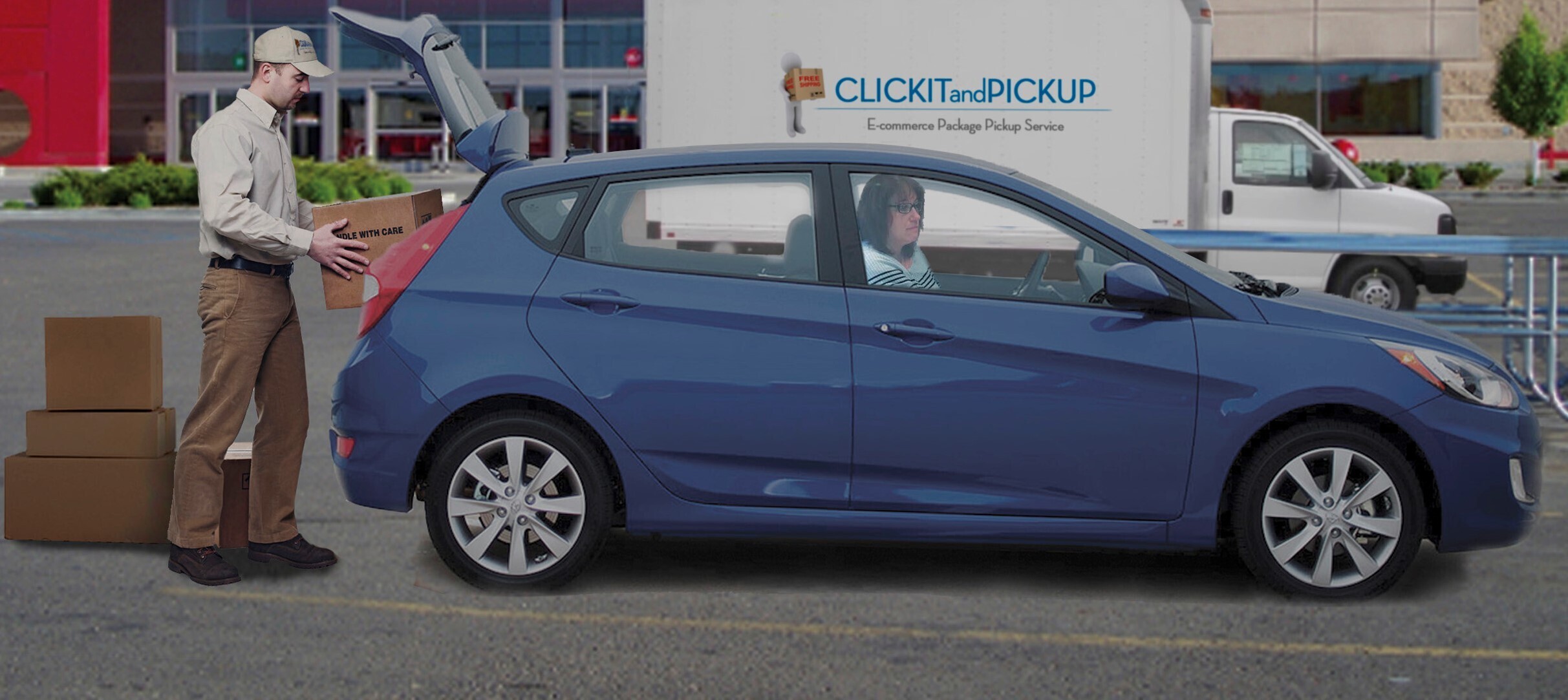 ClickItandPickUp pick up in-store drive-thru service for e-commerce customers.